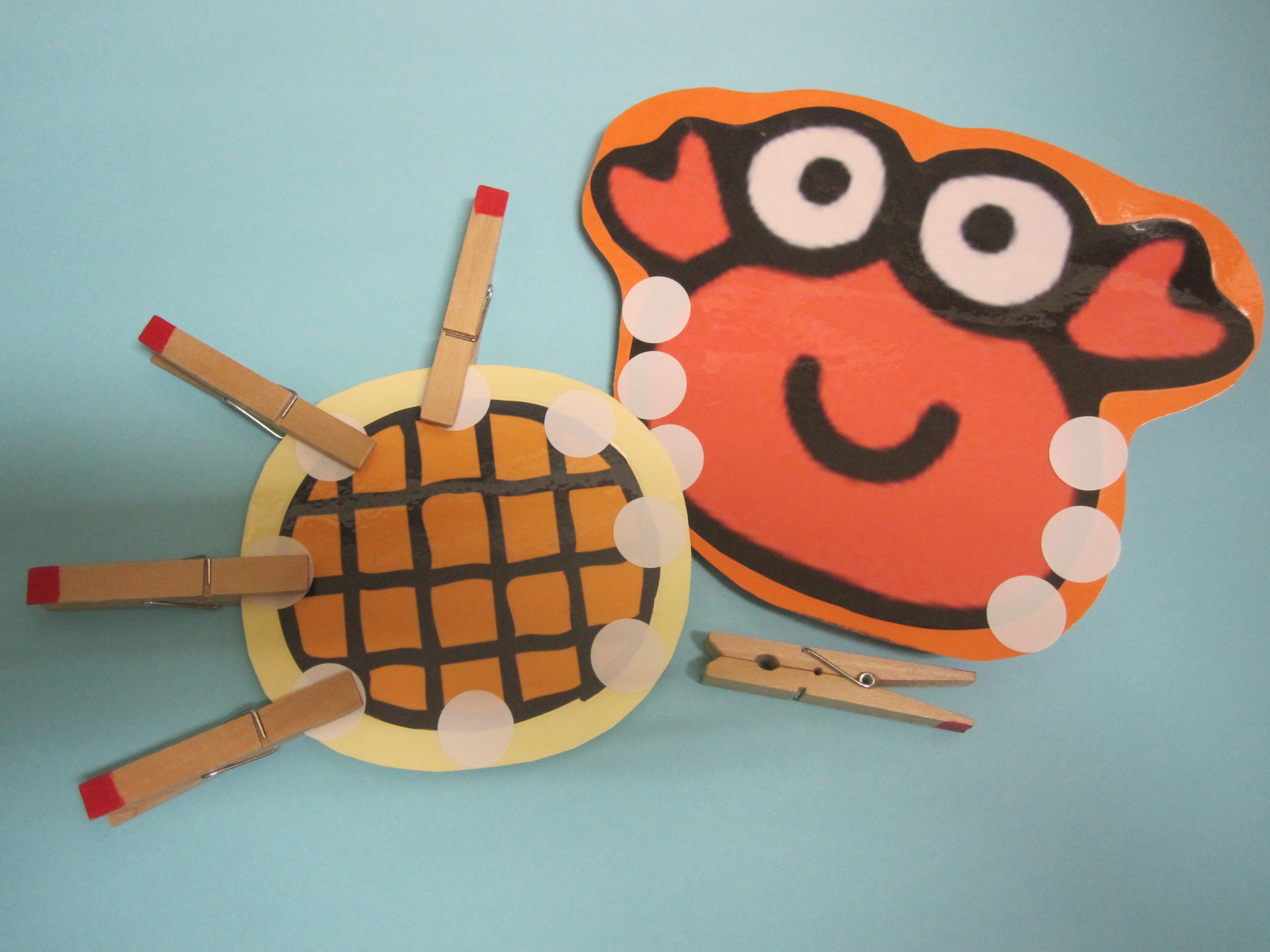 生活動作を促すサポート集 2014年9月20日更新 シェア ポスト 「道具をうまく使えない」「運動がうまくできない」といった不器用さは、生活に困難をきたしたり身辺自立の発達を停滞させるだけでなく、集団生活、さらには自尊感情の発達にも影響を及ぼします。しかし、大人は、経験してきたはずの発達の経過を覚えていないので、いざ子どもに教えるときに、現在自分がしている完成形からさせようとしがちです。無理強いするとそれまでできていたことができなくなったり、それ自体が嫌になったりしてしまうことがあります。ここでは発達の段階を知り、つまづきの原因を探ることから始めるサポート例をご紹介します。お子さんの「できない」が「できた!」につながることを願って・・・。 正しい箸の持ち方 確認しておきたい基本動作~お子さんはどこまで、できていますか~ 1、鉛筆やスプーンを3本の指でもてますか。 2、親指と人差し指で丸が作れますか。 3、じゃんけんのチョキができますか。 ★ 発達の段階 手掌回内握り(1~1.5 歳) 手指回内握り (2~3 歳) 静的三指握り(3.5~4 歳) 動的三指握り(4・5~6 歳) ★原因別サポート法 1、 両手がうまく使えないときには・・・ 手の大きさにあった安定した器で食事をしましょう! 箸や器をうまく操作できないと『かき込み食べ』になってしまいます。そこで、まずは底の広い安定した器を机の上に置き(滑り止めシートの利用もいいですね)、箸を持つ反対の手で支えることから練習を始めましょう!お椀の大きさは、中指と薬指がお椀の底に、親指はふちの近くで持ったときに安定して支えられるくらいが理想です。 2,感覚が未発達なお子さんは・・・ 指1本ずつの感覚を育てましょう! 箸は非常に複雑な動きをするので、指1本ずつの皮膚の感覚の発達が重要になります。目隠しされた状態でお子さんの指を1本ずつ触れて、どの指に触れているかをあってっこして遊んでみるのもいいですね。 3、力のコントロールが苦手なお子さんは・・・ 箸を使うのはかたいものからはじめましょう!力のコントロールができないと、やわらかいものは箸ではさまず、刺して使うようになってしまいます。まずは、豆腐などの柔らかいものはスプーンにして、つまんでも崩れないものから箸で食べるようにするといいですよ。 4、ものをみる力が弱いお子さんは・・・ 食べ物と器の色は違う色にするのはどうですか? 視力が弱かったり、形を判別できないと箸は使いにくい道具になってしまいます。食べ物は器に対して少量ずつのせ、食べ物と器の色が違うようにしてコントラストを出すとみやすくなります。 5、身体のイメージがとらえにくいお子さんは・・・1 本の箸で刺して食べるところからはじめましょう! この場合箸をどのようにもったらいいか分かりにくいということがあります。静的三指握りや動的三指握りが鉛筆で可能なら、まずは1 本の箸でさして食べられるものから食べてみます。次に開閉の必要の少ない麺類を引掛けて、自信がついてきたら四角くきったホットケーキなどを少量ずつからつまんで食べさせましょう。 参考文献(苦手が「できる」にかわる!発達が気になる子への生活動作の教え方ー中央法規ーより) 遊びの紹介(指先の機能を育てる遊び) <洗濯ばさみ付け>=親指と人差し指の動作を促す遊び= クリップの力を入れるところに印をつけておくといいですよ。一般の洗濯ばさみは開閉に大きな力を要しますが、画面の木製クリップは小さな力でも開閉が可能になります。お子さんの様子にあわせて選ぶといいですね。 <どきどきパニック>=じゃんけんでチョキを出すのを促す遊びに= 皆さんおなじみのキャラクターが飛び出す市販のゲームです。じゃんけんで勝った人がキャンディーをもらっていきます。 このときお子さんにチョキを出させるように誘導してみましょう。知らず知らずのうちに訓練に! またキャンディーをさす動作には親指と人差し指で丸を作る動きも含まれますね。 <さぐりあて遊び>=指先の感覚を高める遊び= とって欲しい形のカードを示し、お子さんに袋の中を見ないでカードと同じ形の積み木を取り出してもらいます。 今回紹介している遊具は既製品ですが、例えば袋を2つ用意し、その中に同じ形のもの (ビー玉、おはじき、洗濯ばさみ、積み木、ブロックなど) をそれぞれ入れ、お母さんが取ったものと同じものをお子さんにも取らせるようにアレンジすれば、家庭にあるものでも十分楽しめますよ。