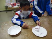 11月の子どもの様子 海老江児童センター 2021年10月28日更新 シェア ポスト 海老江児童センターは、新型コロナウイルス感染防止のために次のことを実施しています。 ●受け入れに当たって ・マスクは必ずしてきてね ・受付に消毒液があります、忘れないで消毒してね ・〇〇さん今日の体調はどうですか?という先生たちに教えてほしいことが 書いてある用紙があります。〇をつけて答えてね ●遊びに関して ・各遊びの部屋は密接、濃厚接触を防ぐため間隔を置いて椅子が並べてあります ・遊戯室や多目的広場は人数を制限して遊びます ●利用予約について 福祉施設など団体や複数人での来館希望の方は、1週間前までに事前予約を電話でしてください。 予約がない場合は、コロナ感染防止や当日の状況によってお断りする場合がありますのでご了承 ください。 みんなも協力してね! 楽しく遊ぼうね! まってるよ! 海老江児童センターだより ** 令和3年度 11月の行事予定 ** * 6日(土曜日)大正琴クラブ 10:30~、 書道クラブ 13:30~ * 13日(土曜日)海老江児童センタードッジボール大会10:00~ 書道クラブ 13:30~ * 15日 (月曜日) 一輪車クラブ16:00~ * 16日(火曜日)~17日(水曜日)、19日(金曜日) 作ろうWeeKday * 22日(月曜日)、24日(水曜日)~26日(金曜日)、 29日(月曜日)~30日(火曜日) リクエストweekday * 27日 (土曜日)大正琴クラブ 10:30~、 キッズスポーツクラブ15:30~ 第2回海老江児童センター ドッジボール大会 13日(土) 前日まで天候が不順で、安全面を考慮してゲーム大会を行うことに決めましたが、子ども達の熱い要望と、保護者の方のご理解により、無事にドッジボール大会を開催することができました。 子ども達は、日頃の練習の成果を発揮し、力いっぱい友達やお父さん、お母さんと対戦しました。 負けて悔しい悔し泣き、勝ってうれしいうれし泣き、楽しかったと満面の笑みなどいろいろな表情が見られました。「また、やりたい!」「今度こそパパチームに勝つぞ!」と意欲満々!また来年できたらいいですね。 作ろうWeeKday コットンボール作り 16日(火)17日(水) 19日(金) レース糸と水風船を使って、コットンボールを作りました。 糸をまくのも、ボンドを風船にぬるのも、少し難しかったようですが、 乾いてから、風船を割ると、とっても素敵なボールになりました。 このボールは、12月の行事、「サンタさん、まってるよ」で、 ステージに飾ります。みんなの作品が、 クリスマスを盛り上げてくれることでしょう。 リクエストweekday・スクイーズづくり(11月22日、24日~26日、29日、30日) 思わず食べたくなる、アイスクリーム! スポンジと、ジョイントコークで作りましたよ。 思い思いのデザインで、トッピングしたり絵を描いたり。 どれもおいしそうです♡ PDFファイルをご覧になるには、Adobe Readerが必要です。こちらのバナーから無料でインストールできます。 お問い合わせ 海老江児童センター 所在地:〒933-0237 富山県射水市東明東町3番地5 電話:0766-86-1518 FAX:0766-86-1518 Eメールアドレス:ebie-kids@city.imizu.lg.jp